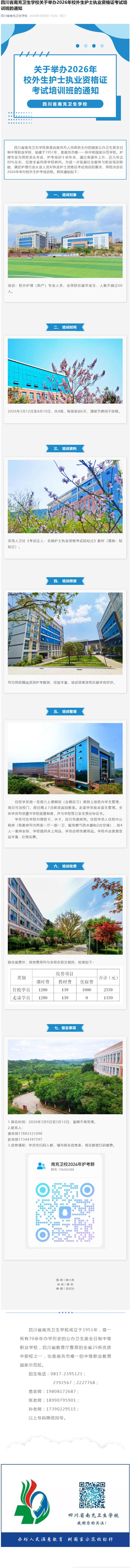 四川省南充卫生学校关于举办2026年校外生护士执业资格证考试培训班的通知