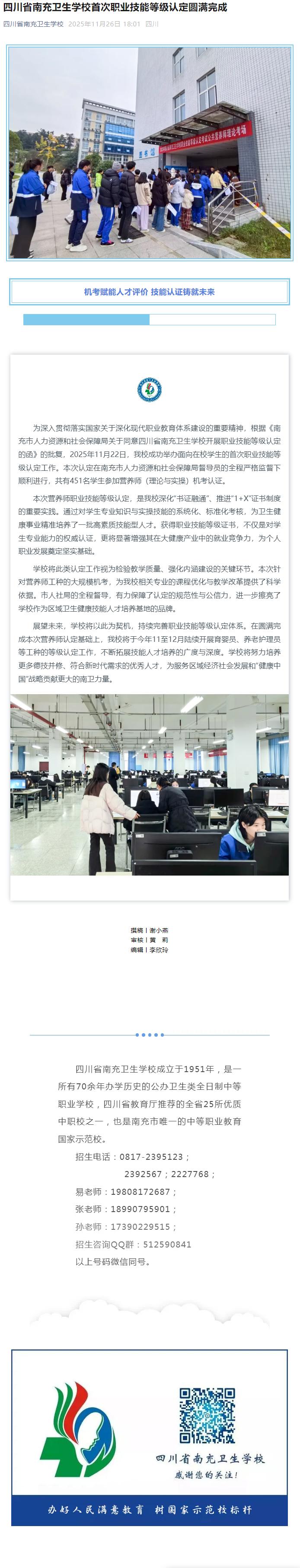 四川省南充卫生学校首次职业技能等级认定圆满完成
